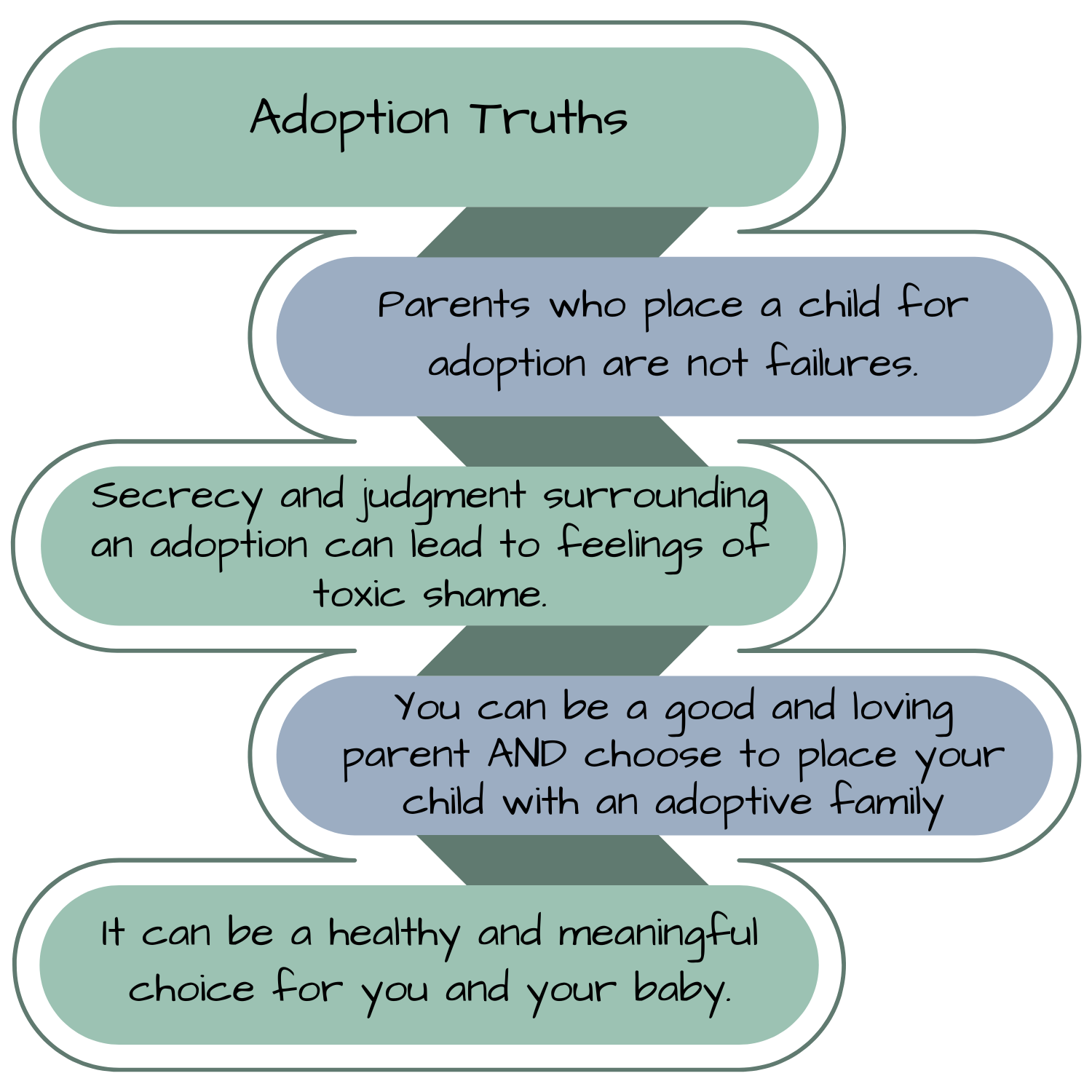 Parents who place a child for adoption are not failures. Secrecy and judgment surrounding an adoption can lead to feelings of toxic shame; this is not God’s plan for you! You can be a good and loving parent AND choose to place your child with an adoptive family. It can be a healthy and meaningful choice for you and your baby.